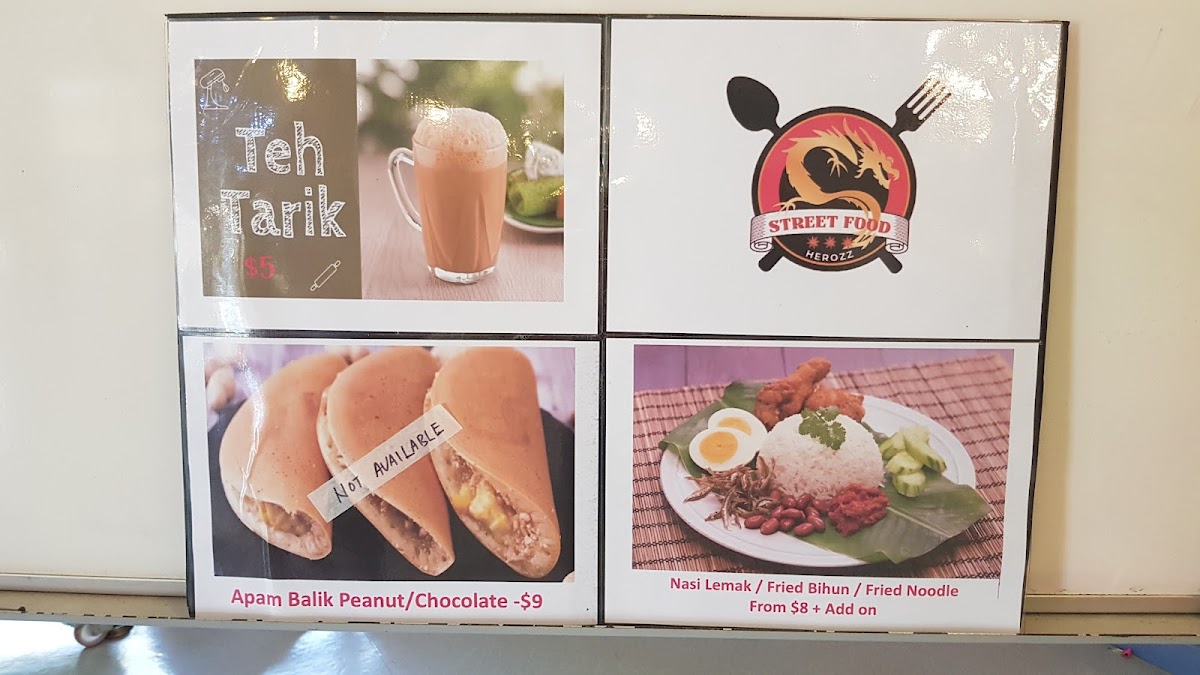 The menu features a variety of Southeast Asian dishes primarily centered around authentic Singaporean and Malaysian flavors. It is organized into several key categories to accommodate different tastes and meal preferences.